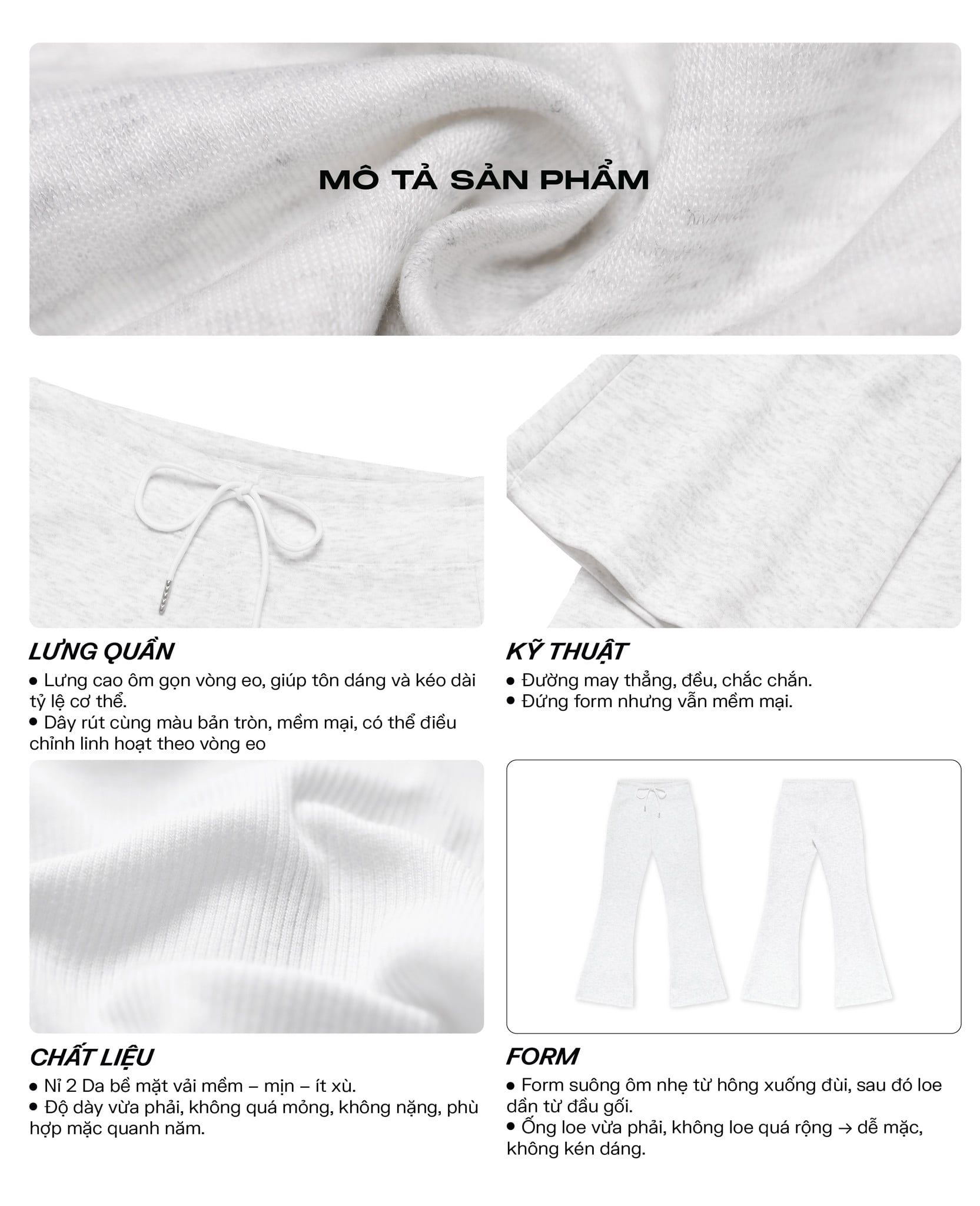 🌟 Ống loe vừa phải, không quá rộng, dễ mặc, không kén dáng.